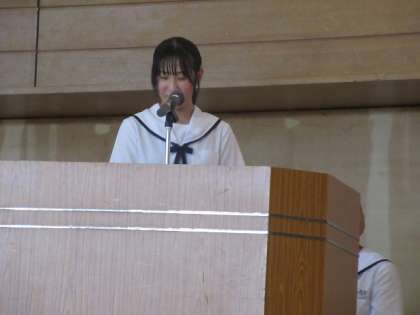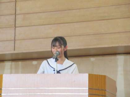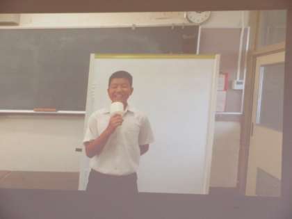 9/8(金)生徒会集会 その4 公開日 2023/09/08 更新日 2023/09/08 北中NEWS 広報委員会や給食委員会では、興味深い実験やインタビューをもとに、説を検証していました。 映像がとてもおもしろく、場内に笑いが起こるなど、温かな雰囲気になりました。