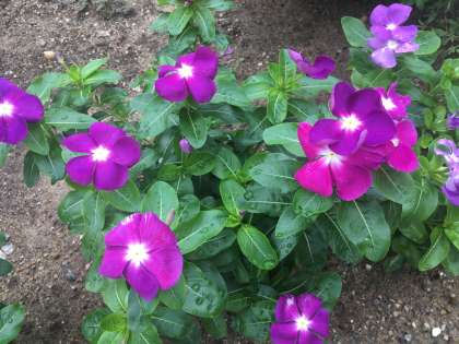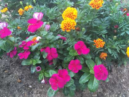 前庭の色とりどりの花々が、生徒の登校を見守ります。