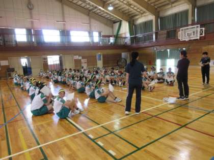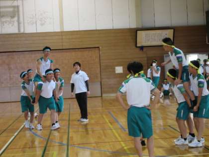 3年生の様子です。 女子は、ルールを理解しています。 男子は、騎馬になって移動の練習です。