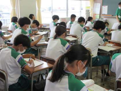 9/21(木)2年生の授業の様子 公開日 2023/09/21 更新日 2023/09/21 第2学年 2年生の英語、数学の授業の様子です。英語では、ペアをつくりスピーキングの練習をしていました。数学は、一次関数の問題に取り組んでいました。