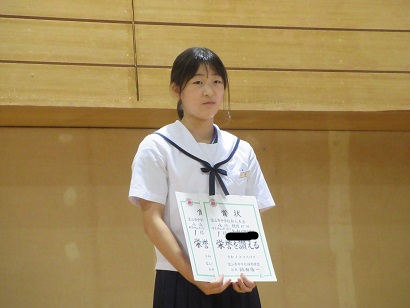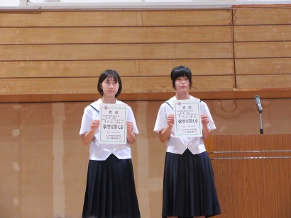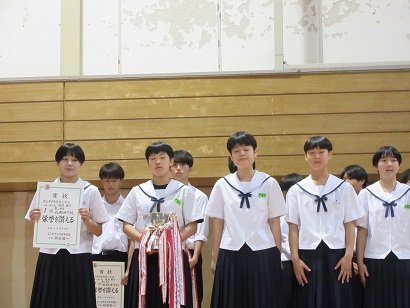 受賞報告・生徒会認証式 その1 公開日 2023/09/23 更新日 2023/09/23 北中NEWS 本日1時間目に受賞報告と生徒会認証式を行いました。 受賞報告では、新人大会や夏休みの大会で、すばらしい成績を収めた生徒が登壇しました。 受賞者が、次の大会に向けた決意を述べました。頑張ってください!