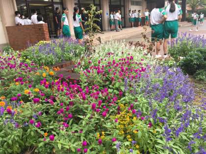 前庭の花々は、今日も明るい笑顔を見せてくれています。