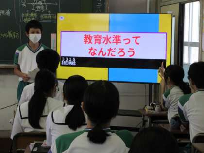 9/28(木) 3年生の授業の様子 公開日 2023/09/28 更新日 2023/09/28 第3学年 3年生の総合的な学習の時間です。自分の課題を見付け、調査した内容をスライドにまとめ発表しました。さすが3年生、発表資料に多くの工夫がありました。