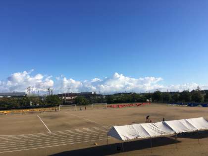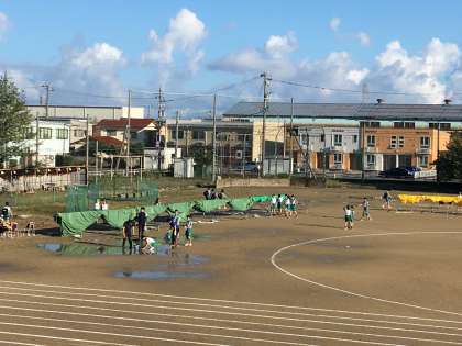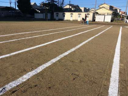グラウンドの準備を進めています。 ラインの白色がグラウンドに映えます!!