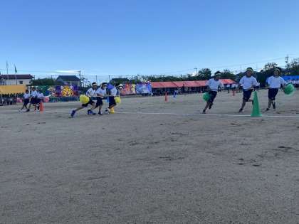 体育大会 1年 台風の目 公開日 2023/09/29 更新日 2023/09/29 北中NEWS 競技名は「THE FIRST STICK DUNK」。一致協力して、一本の棒を繋ぎます。楽しく戦っています。