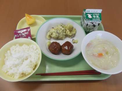 今日10月13日は「さつまいもの日」です。給食の献立にも、さつまいもを使った料理が並べられています。10月は、さつまいもが旬で市場に出回るからですが、13日になったのは、次の理由からだそうです。