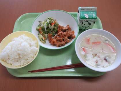 11/1(水)今日の給食 公開日 2023/11/01 更新日 2023/11/01 北中NEWS 本日のシチューは、秋の野菜がいっぱいで、サツマイモがほくほく甘いです。北中ファームでできたサツマイモはどんな料理になったでしょうか? <今日の献>> ごはん 牛乳 ポークチャップ アスパラサラダ 秋の香りシチュー