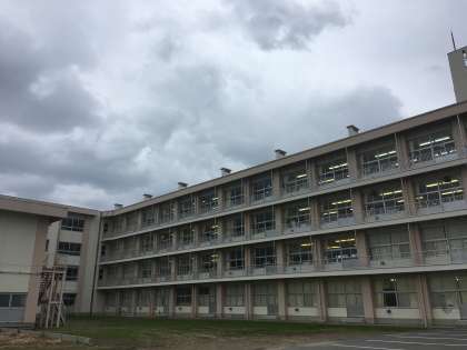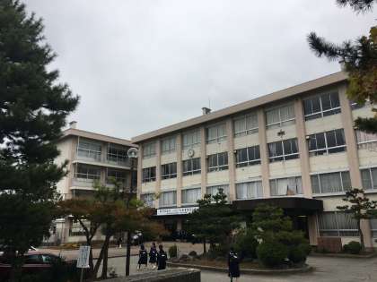 サハリン付近には低気圧があって北東に進み、低気圧から前線が日本海にのびています。これに伴い、北部中学校の上空にも分厚い雲が…。しかし、このお陰で放射冷却が抑えられ、今朝はやや気温が高かったようです。朝、布団から出るのもスムーズだったのではないでしょうか。