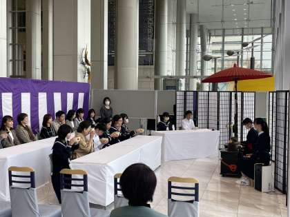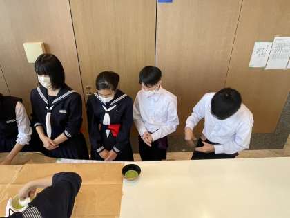 茶道部のみなさんが、お点前を披露しました。多勢の前で緊張しながらも、日々の練習の成果を発表できました。