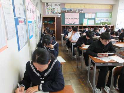 3学年授業の様子 公開日 2023/11/20 更新日 2023/11/20 第3学年 3年生は、本日から期末評価です。学習した成果を発揮しようと取り組んでいます。廊下には、黒カバンがきれいに並べてあります。