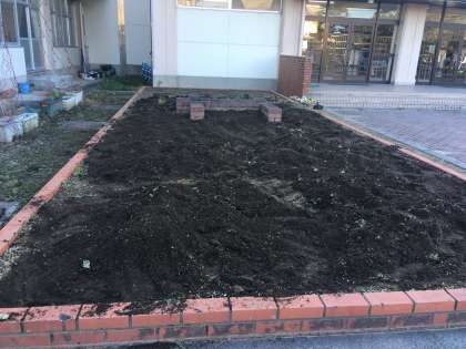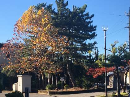 前庭の木々は、美しく紅葉しています。花壇は、チューリップの球根の植え付けに向けて、準備を始めました。