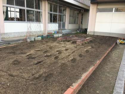 前庭の花壇は、次の苗植えに向けて準備を進めています。