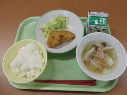 11/29(水)今日の給食 公開日 2023/11/29 更新日 2023/11/29 給食 パコラとは、インド風の天ぷらのことです。薄くスライスした食材にひよこ豆の粉を衣にして油で揚げた料理で、今回は豚肉が使われています。衣にスパイスを加えるのが特徴で、今日のポークパコラではカレー風味の味付けになっています。 <献立> ごはん 牛乳 ポークパコラ ゆでキャベツ かぶのスープ