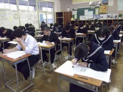 11/30(木)市中3学力調査 公開日 2023/11/30 更新日 2023/11/30 第3学年 本日・明日と、富山市中3学力調査が行われます。本日は社会・国語・理科、明日は英語・数学です。進路指導の際の資料の一つになるので、3年生はかなり真剣に、集中して取り組んでいます。 がんばれ! 北中生!!