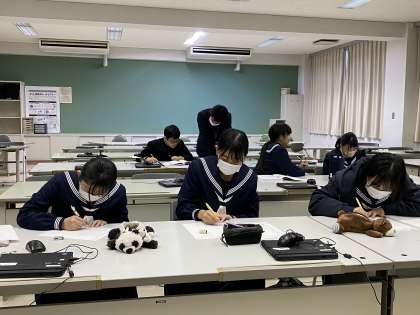 Bemb(勉部)の様子 公開日 2023/12/01 更新日 2023/12/01 第3学年 Bembの様子です。実は、もう2人頑張っていましたが、所用により早めに帰宅しています。 3年担任の羽根先生が、Bemb員の様子を確認し、アドバイスしていました。また部員同士の学び合い(教え合い)の場面もありました。いい雰囲気です。