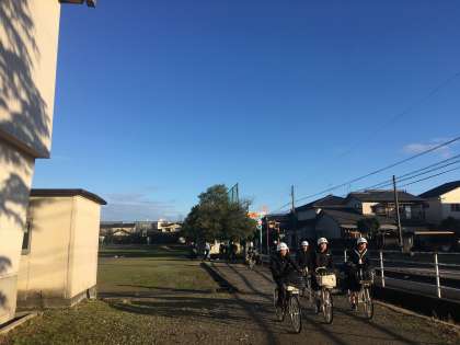快晴の青空に包まれて、生徒は元気に登校しています!!