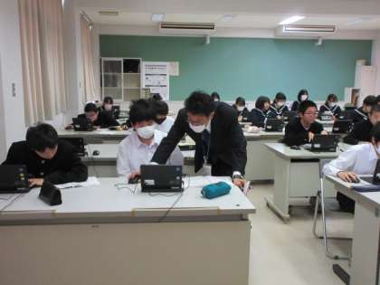 技術・家庭科の技術分野は、コンピュータ室でアプリケーションソフトウエアの活用をしていました。各自、課題に取り組んでいました。