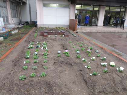 Today's Flower Bed!! 公開日 2023/12/12 更新日 2023/12/12 北中NEWS 昨日、ボランティアの生徒によって植え付けが行われた花壇です!! 北部中学校の頭文字を模したデザインになっています!!