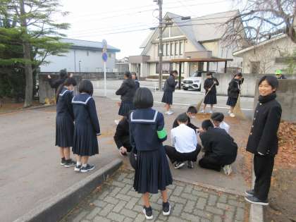 12/14(木) HCP(Hokubu Clean Project) 公開日 2023/12/14 更新日 2023/12/14 北中NEWS 生徒会主催のHCP活動を行いました。生徒会長の呼びかけに応じ、多くの生徒が落ち葉掃きをしてくれました。きれいになり、気持ちのよい朝になりました。ありがとう。