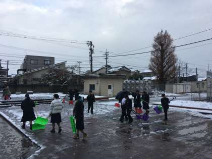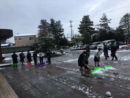 早めに登校した生徒が、率先して除雪に取り組んでくれています!!いつも、ありがとう!!