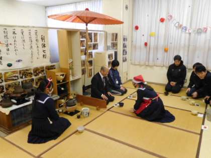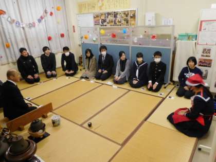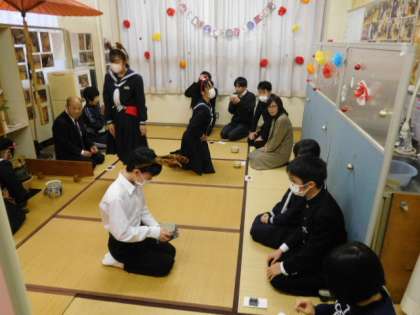 12/18(月)茶道部 クリスマス茶会 公開日 2023/12/19 更新日 2023/12/19 北中NEWS お世話になっている先生方や3年生の茶道部員を招待して、「クリスマス茶会」を開催しました。たのしいひとときを過ごすことができました。