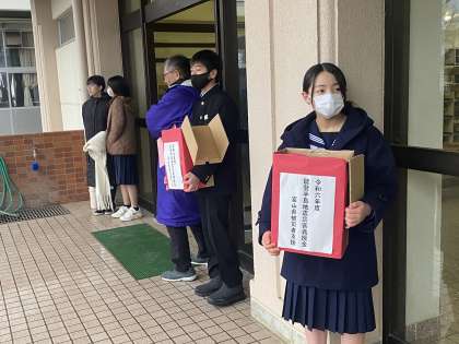 生徒会の呼びかけで、能登半島地震で被災された方に向けて、義援金を集める活動をしています。多くの生徒が、協力してくれています。みんなの気持ちが、被災された方々に届くように祈っています。