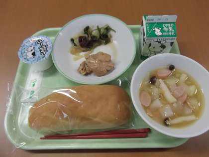 今日の献立に「豆ときのこのスープ煮」がありますが、大きなシメジが使われています。