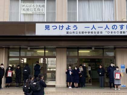 生徒会の呼びかけで、能登半島地震で被災された方に向けて、義援金を集める活動をしています。今週末までの活動を予定しています。