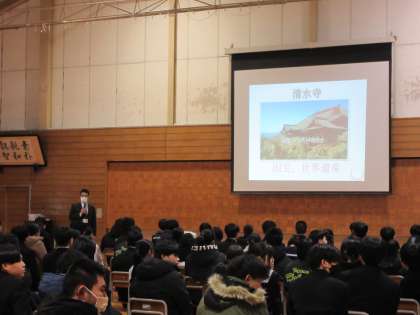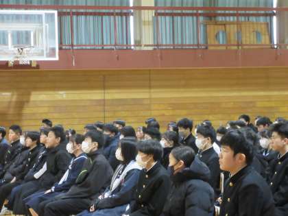 2年生は4限目に学年集会を行いました。来年度5月の修学旅行までの準備や具体的な日程について、学習しました。生徒たちは、修学旅行についてイメージできたようで、わくわくしていました。