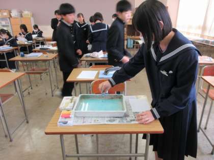1/29(月) 授業の様子(2学年) 公開日 2024/01/29 更新日 2024/01/29 第2学年 美術の授業の様子です。モダンテクニックを、それぞれの作品にいかします。どのテクニックにするのか、何をつくるのかを考えながら取り組んでいました。