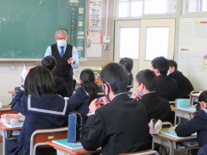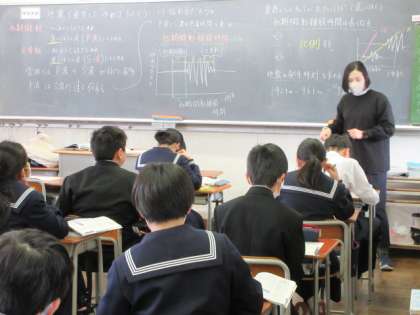 1/31(水) 授業の様子(1学年) 公開日 2024/01/31 更新日 2024/01/31 第1学年 理科と数学の授業の様子です。 理科は、地震について、数学は、立体図形について学習していました。先生の話に集中していました。