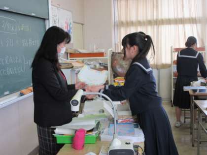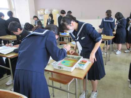 2/2(金) 授業の様子(2年生) 公開日 2024/02/02 更新日 2024/02/02 第2学年 美術の授業の様子です。モダンテクニックに取り組んでいました。先生に相談している様子がありました。どんな作品ができるのでしょうか。楽しみです。