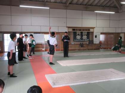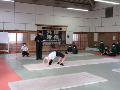 2/6(火) 授業の様子(1学年) 公開日 2024/02/06 更新日 2024/02/06 第1学年 保健体育の授業では、マット運動の発表会でした。「○番 〜です。」と言って始めました。緊張しながらも、今まで練習した技をつなげて発表しました。ブリッジを上手にする人が多かったです。