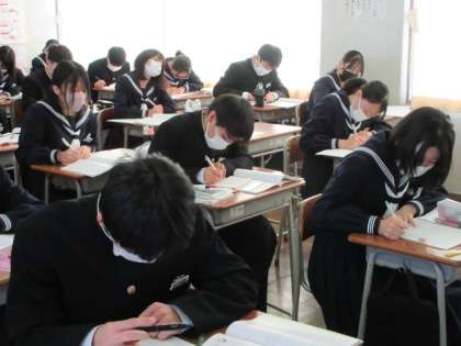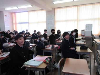 2/6(火) 授業の様子(2学年) 公開日 2024/02/06 更新日 2024/02/06 第2学年 数学と英語の授業の様子です。数学は、平行四辺形の性質について、ノートにまとめていました。英語は、発音練習中。大きな声で発音していました。