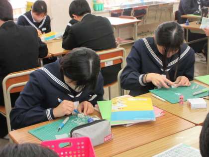 2/6(火) 授業の様子(3学年) 公開日 2024/02/06 更新日 2024/02/06 第3学年 英語と美術の授業の様子です。美術では、消しゴムはんこをつくっていました。黙々と作業を進めていました。できあがりが楽しみです。