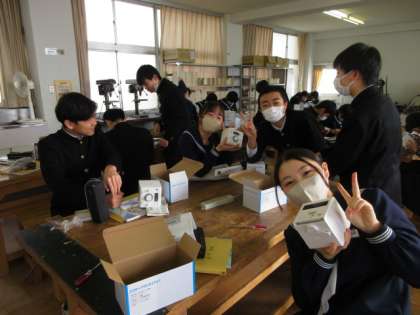 2/7(水) 授業の様子(3学年) 公開日 2024/02/07 更新日 2024/02/07 第3学年 社会と技術・家庭科の技術分野の授業の様子です。技術分野では、ラジオ製作に取り組んでいました。完成品と、「はい、チーズ!」