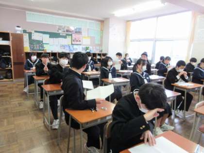 2/16(金) 学年末評価(3学年) 公開日 2024/02/16 更新日 2024/02/16 第3学年 3年生は、学年末評価2日目、最終日です。テスト用紙を配り、開始のチャイムを待つ様子です。学習の成果を発揮してほしいと思います。