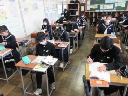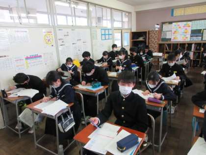 1年生は、来週の学年末評価に向け、集中して取り組んでいました。