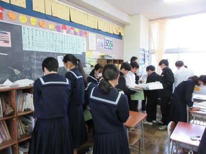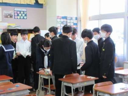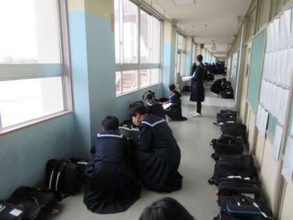 1限のテストを終えた休み時間の様子です。あと、2教科です。頑張れ1年生。