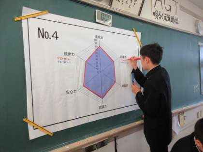 2/27(火)学級力について 学級討議をしました(1学年) 公開日 2024/02/27 更新日 2024/02/27 北中NEWS 事前のアンケートから、学級の特性について話し合い、今後どう取り組むかを検討しました。 班活動を通じて協調力を高めてきている、授業ではメリハリをつけ学習への取り組みを向上させるなどの意見が出ました。 最後に、1年生の見本となる2年生になるために、自分たちが来年度どのような姿を目指すかを話し合いました。