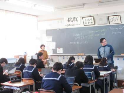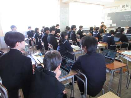 英語の授業の様子です。クイズに答えていました。正解すると歓声が上がっていました。