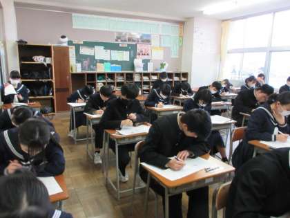 3/1(金) 確認テストの様子(3学年) 公開日 2024/03/01 更新日 2024/03/01 第3学年 3年生は、確認テストに取り組んでいます。北部中学校で受ける最後のテストになりました。頑張れ、3年生!