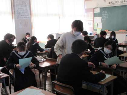 数学と英語の授業の様子です。英語では、座席の前後ペアで会話練習に取り組んでいました。