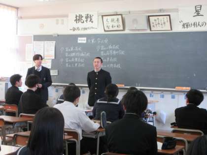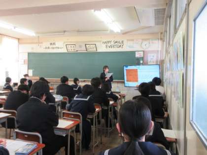 3/7(木)2年生「先輩に学ぶ講演会」その2 公開日 2024/03/07 更新日 2024/03/07 第2学年 高校生の先輩から、どんな高校生活を送っているか、部活動や定期テスト、制服や高校の先生のこと等を教えていただきました。2年生は興味津々です。