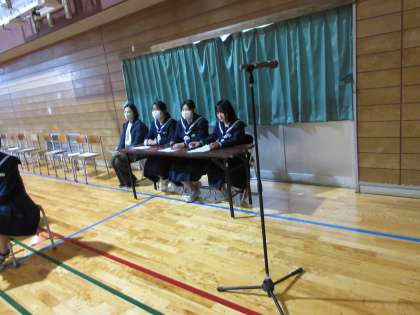 3/8(金) 令和6年度前期生徒会役員立会演説会・選挙 公開日 2024/03/08 更新日 2024/03/08 北中NEWS 本日、令和6年度前期生徒会役員立会演説会と選挙を行いました。 生徒会長候補に新3年生から2名が、生徒副会長候補に新3年生から3名、新2年生から1名が立候補しました。それぞれが自分の政策を演説しました。 その後各教室に戻り、chromebookで投票しました。 候補者の皆さん、選挙管理委員の皆さん、お疲れ様でした。