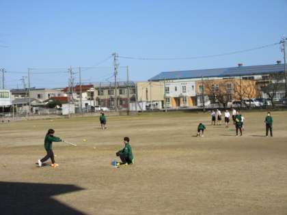 保健体育科の授業の様子です。ソフトボールのバッティング練習をしていました。青外の下での活動で、気持ちよさそうです。
