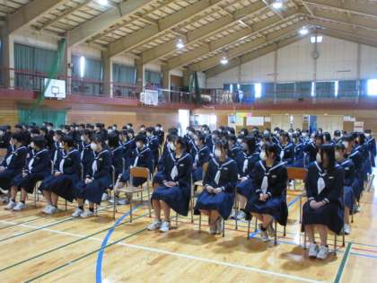 3年生は、卒業式に向けて練習が始まりました。緊張して説明を聞いています。