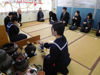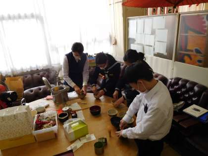 3/11(月)茶道部の様子(卒業茶会) 公開日 2024/03/11 更新日 2024/03/11 北中NEWS 茶道部では、お世話になった先輩や先生方を招いて卒業茶会を催しました。日頃の稽古の成果を十分に発揮して、感謝の気持ちを伝えることができました。 部員のみんなは、真剣に取り組んでいました。