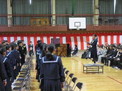 3/14(木)第77回卒業証書授与式(別れのことば) 公開日 2024/03/14 更新日 2024/03/14 北中NEWS 卒業生代表の別れのことばの様子です。代表生徒の思いに、涙腺が・・・。 卒業生の合唱「群青」、体育館に響き渡りました。