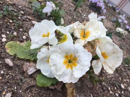 前庭の花々は、あたたかい春が来るのを、心待ちにしています。